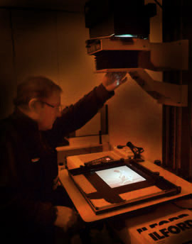 Devizes Darkroom offers guidance and information on film developing and b/w darkroom printing. With over 45 years experience in some of the most prestigious photo labs in London we can help you to learn how to develop your own films at home, of all formats, and print or scan the negatives. The Darkroom is not open every day, please mke an appointment to come and see us. |